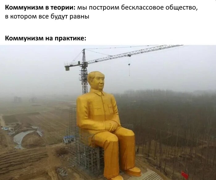 1. На 9gag шутят по поводу огромной золотой статуи Мао Цзедуна. Это очевидная отсылка к «Скотному двору» Оруэлла — «Все животные равны, но некоторые животные равнее других».