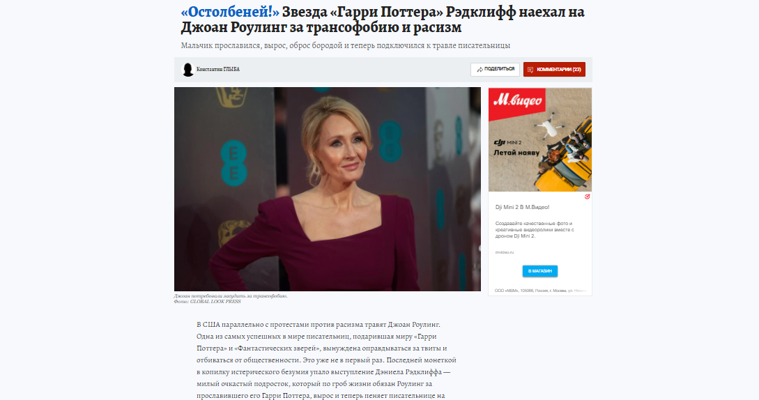 Как бы не относился я к старушке и ее книгам, но с ней поступают нечестно хотя как говорится за что боролись на то и напоролись. Ее вечные заигрывания с ЛГБТ и изменениями ориентации Дамболдора и так далее принесли свои грустные плоды, вы ждали иного исхода от ЛГБТ (важная поправка дома у себя в кровати пусть делают, что хотят, но не выносят это на всеобщее обозрение вот так вот. Не одобряю в
