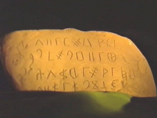Интересные древние каменные письмена обнаруживаются ныне по всему миру. Например, этот камень обнаружен в Эквадоре. Но, утверждается, что аналогичные письмена на этом же древнем языке обнаружены также в Колумбии, в США в штате Илинойс, во Франции, на Мальте в Средиземноморье, в Туркмении, в Австралии, в Южной Калабрии в Италии.