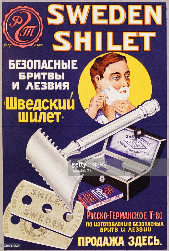 Сведений о том, где компаньоны достали оборудование для производства лезвий, пока нет. Первым делом они подали заявки в Комитет по делам изобретений ВСНХ на регистрацию торговых знаков и начали рекламную компанию через популярные журналы. В объявлениях новая фабрика изобретательно называлась «Sweden Shilet», «Шведский Шилет». Шведский – потому что закупали там сталь, Шилет – понятно почему. Для экономии места буду ее именовать «РГТ», Русско-Германское Товарищество.