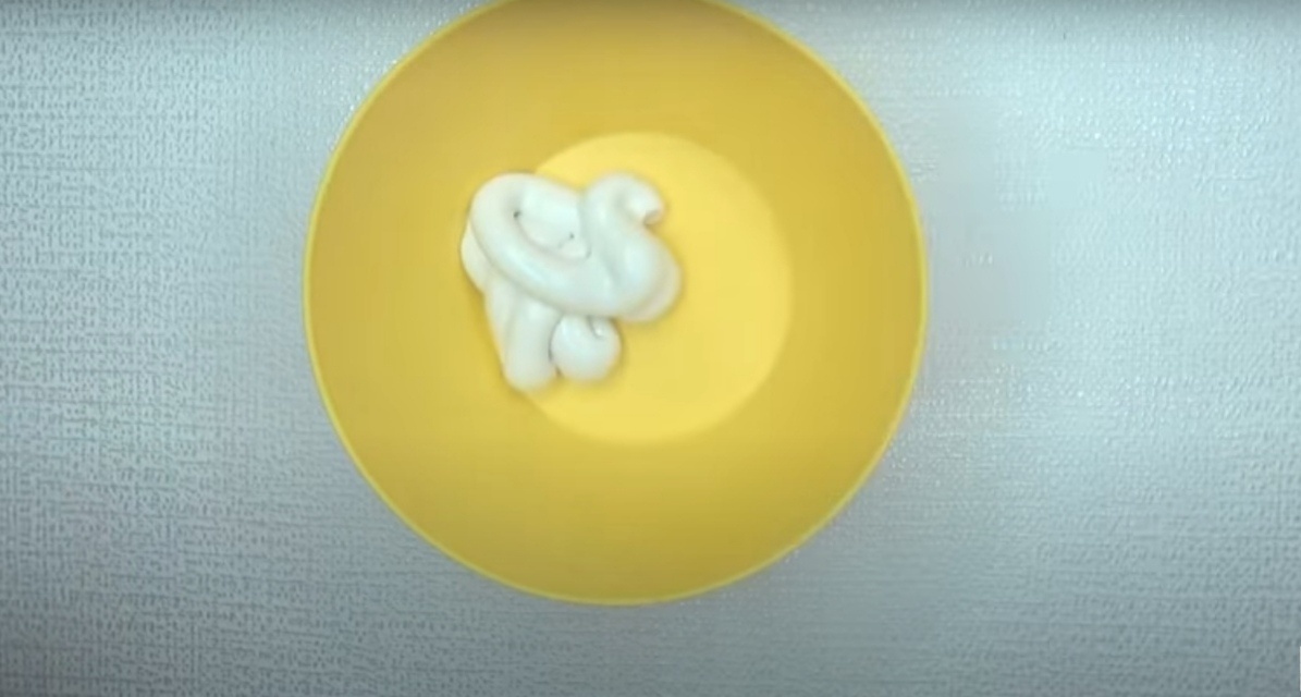 Берём миску и выдавливаем зубную пасту (примерно столовую ложку).