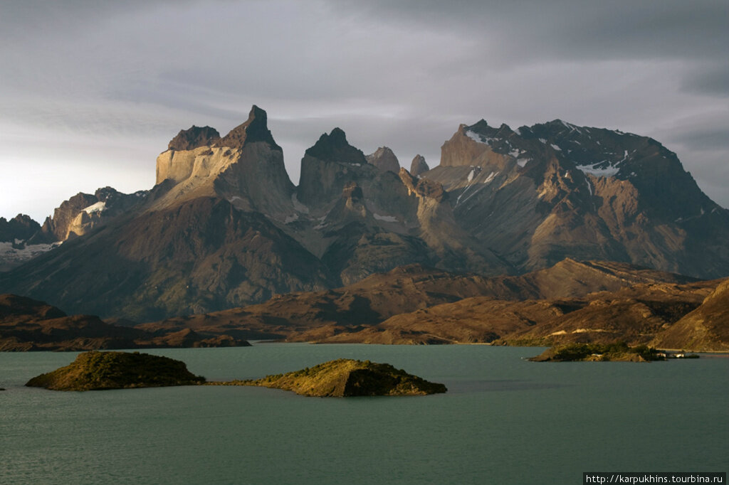 Ну всё, вернулся. Морда красная. Вернее коричневая, с красноватым отливом. Прямо как у индейца. Иду по морозным Мытищам, снег сверкает на солнце как-то уже забыто. Люди смотрят с недоумением. И откуда такой загорелый, в самый разгар зимы? А я просто поменял зиму на лето. По крайней мере, один месяц. Январь на июль. Так что не только лето провёл, то есть урвал кусочек, но и зиму провёл, а вернее обвёл вокруг пальца. Итак, путешествие в Патагонии закончилось. Аргентина и Чили опять совсем далеко, на другом краю земли. Вроде уже приехал, но это только физически. Сознание где-то ещё там, в ветреных горах Патагонии, где ледники стекают прямо в озёра и даже в море. Где сейчас лето, но дыхание Антарктиды доносится даже туда, так вроде далеко на север. И где всё не так, как у нас в северном полушарии, где всё наоборот. Однако надо быстрее возвращаться не только телом, но и душой. Надо начинать рассказ о далёких краях. И это краткое представление предлагаю в качестве предисловия и анонса к большой серии фото-путевых заметок про Патагонию. Текста, наверное, будет не так уж много, зато много фотографий. Вот и сейчас, для начала хотел обойтись просто текстом, но всё же выберу одну фотографию. Например, вот эту. Это массив Cuernos del Paine с озера Pehoe. Ракурс, который очень хотел увидеть и который мог не увидеть по причинам, о которых ещё расскажу.