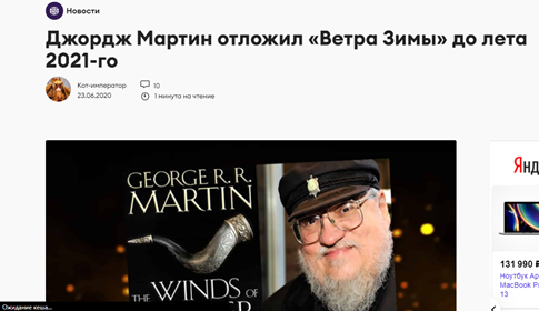 Старина Джорджи затянул с выходом «Ветров Зимы». Хм ну дедка можно понять, он стар и ленив свое бабло срубил и сейчас где-то попивает кофеек ухмыляясь как его коллега Сапковский