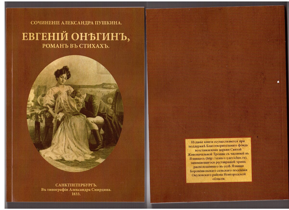 Представляемъ вамъ книгу съ романомъ въ стихахъ Александра Сергѣевича Пушкина «Евгеній Онѣгинъ».