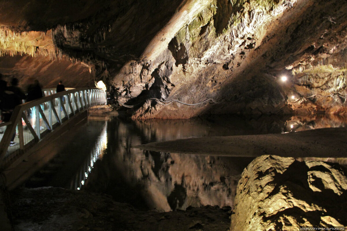 Раньше в конце экскурсии посетители покидали пещеру на лодках, но теперь из-за низкого уровня воды, этот способ себя изжил. Вместо этого построен современный мост. На самом деле может это и к лучшему, плыть в ледяной воде в почти полной темноте в закрытом пространстве достаточно страшно. Особенно после рассказа экскурсовода о том, что некогда в одном из озер пещеры утонул спелеолог и тело его так и не было найдено!
