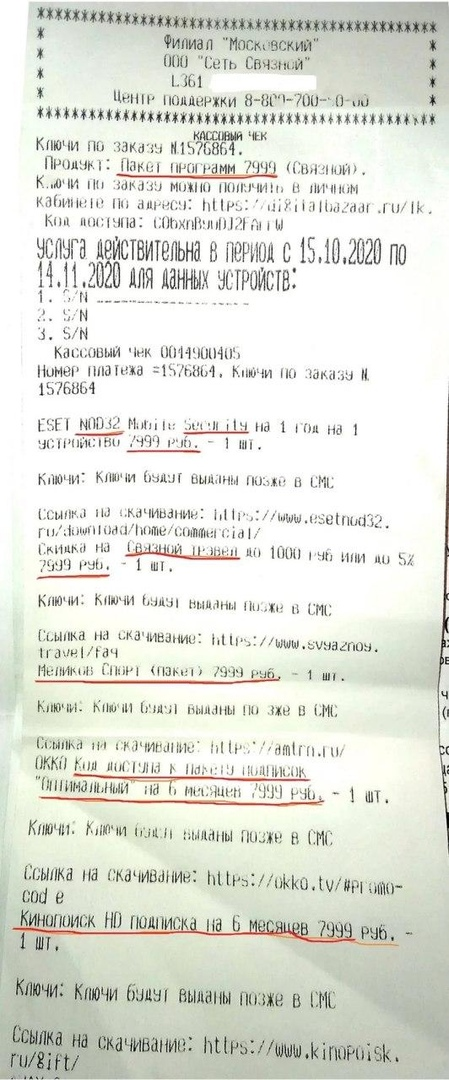 Работница "Связного" по доброте душевной подключила старушке пакет услуг на 26к. По чеку видно, что бабушку подписали и на "Кинoпоиск", на спopт, и на пyтешествия.