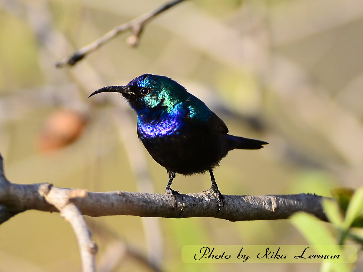 Из-за маленьких размеров и изогнутого клюва птичек часто путают с колибри. Называется птица - Nectarinia osea, Палестинская Нектарница или Красноподмышечная Нектарница. На иврите - цуфит, а на английском sunbird (солнечная птичка). Колибри в Израиле нет, у нас нектарница вместо неё. Эти драгоценности обитают на Ближнем Востоке и в Центральной Африке.