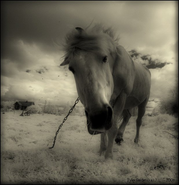 Крестьянин разозлился, схватил винтовку и убил коня.