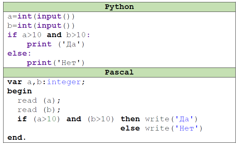 Пример 2. Ниже представлены программа, записанные на двух языка программирования.