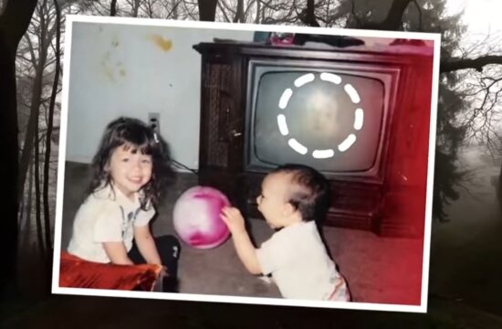 Десткое лицо словно появляющиеся в телевизоре могло показаться обманом зрения, если бы не рассказ героя который сделал это фото.