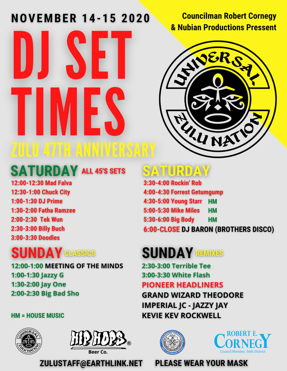 Официальной датой, общепризнанным днем рождения Хип Хоп Культуры считают 12 ноября 1974 года, а официальным днем рождения Universal Zulu Nation считают 12 ноября 1973 года.