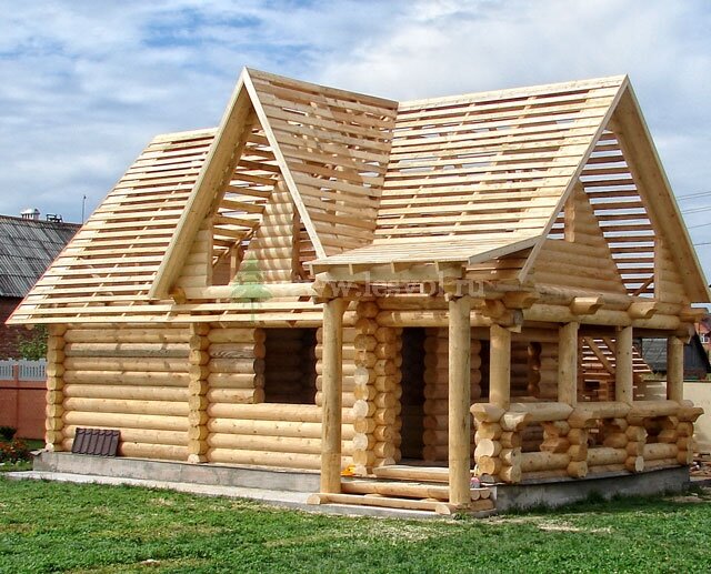 В такой технологии бревна следует укладывать друг на друга. Соединение между срубами происходит с помощью круглых пазов, которые вырезаются на одной из сторон каждого из бревен. Чтобы дом был прочнее, стоит выбирать сруб диаметром 20-40 см. Венцы скрепляются при помощи деревянных шипов длиной 15-20см.