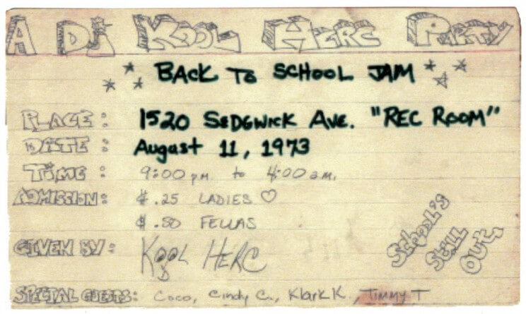 11 августа 1973 года диджей по имени Kool Herc устроил вечеринку в подвале жилого дома на 1520 Sedgwick Avenue в Бронксе, Нью-Йорк. Конечно, основы хип-хопа были заложены еще раньше и в разных местах разными людьми, но 11 августа 1973 года стало своего рода символической датой, обозначающей «рождение хип-хопа».