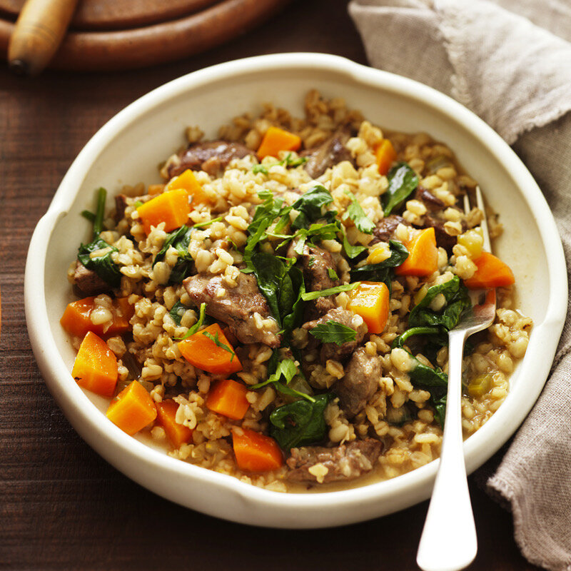 В это время займемся подготовкой перловой крупы. Ее нужно тщательно промыть, высыпать на бумажное или обычное полотенце, дать просохнуть. Чтобы усилить аромат и подчеркнуть вкус перловки, ее приготовление рекомендуется начинать с обжарки. Высыпаем на сковороду без масла подсушенную крупу, обжариваем в течение 2-3 минут, пока не появится тонкий аромат, слегка напоминающий ореховый.