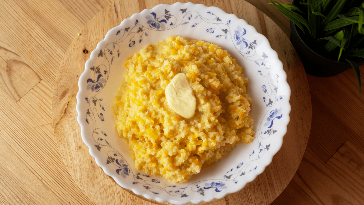 Сегодня у нас тыквенная каша с пшеном на молоке.