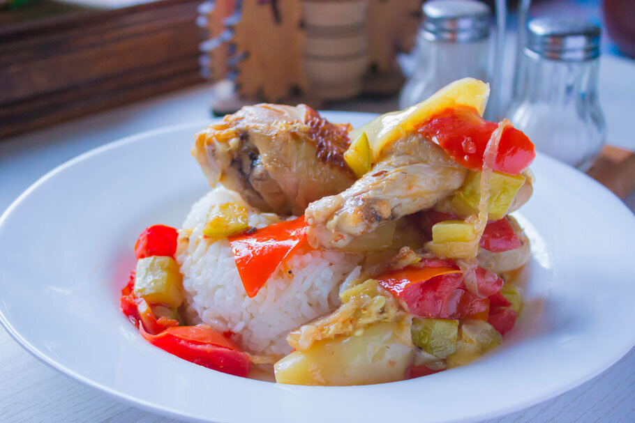 Давайте пробовать! Вот чем мне нравятся такие блюда - их почти невозможно испортить, а получается вкусно! Все получилось отлично! Разноцветные овощи с колоритным ароматом зиры! Курочка, пропитанная ароматами чеснока и специй! Единственное, чтобы я добавил - так это предварительная мариновка цыпленка. Она сделает вкус птицы еще более насыщенным! Приятного аппетита!