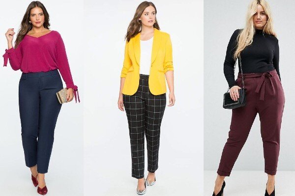 Для женщин plus size невысокого роста брюки – это не только предмет одежды, но и возможность удачно скорректировать свои пропорции. Правильно подобранные брюки зрительно увеличат рост, и сделают ноги длиннее и стройнее. В прямых длинных брюках женщина будет смотреться очень выигрышно. Цвет лучше подбирать из темной гаммы. Брюки могут быть цвета асфальта, коричневыми и темно-коричневыми, индиго, бордо, темно-зелеными. Если есть смысл подчеркнуть талию, то блузку можно заправить. Элегантно будет смотреться с прямыми брюками жакет и пиджак. Самой выгодной моделью для невысоких полных женщин является зауженные брюки. Они сделают акцент на голенях и щиколотках. Только не надо делать внизу манжеты, это визуально укоротит ноги. Для невысоких полных дам широкий крой крайне нежелателен. Образ станет визуально более громоздким. Но для женщин среднего роста можно подобрать вариант широких брюк из легкой темной ткани. Обращая внимания на фасон при покупке брюк, не забывайте про цвет ткани. Сейчас