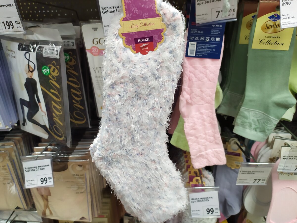 Пушистые носочки 100% полиэстер, отлично тянутся от 37 до 40 размера цена 99 руб.