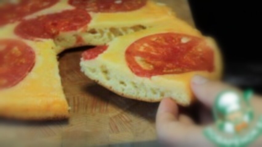Тем временем нарезать помидор кольцами и отправить в сковороду, выкладывая на слой из чеснока