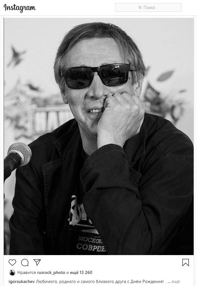 Добрый день, уважаемые посетители моего канала! О чем хочу поведать сегодня: в силу своих интересов вокруг российской рок-музыки, подписан я, знаете ли, на многих представителей или условных представителей этого жанра в небезызвестной социальной сети Instagram. Есть среди них и такая известная личность, как Игорь Иванович Сукачев. Ни для кого не секрет, что Игорь Иванович является близким другом актера Михаила Ефремова, который сами знаете каких нехороших дел натворил на Садовом кольце в Москве в июне 2020 года. Так вот на днях, 10 ноября, у этого замечательного актера было день рождения. Хотел сначала написать, что он справлял день рождения, но в сегодняшней ситуации не знаю на сколько это возможно, хотя и не исключаю - утка с яблоками уже вроде как мелькала ранее. И, значит, листая ленту инстаграма я вижу яркий пост от Гарика Сукачева, вот такой вот: