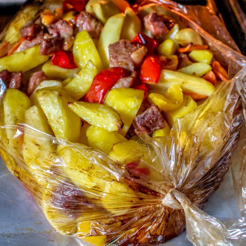 Мясо с картофелем, запеченные в рукаве, — это сочное, ароматное мясо, запеченное вместе с гарниром из картофеля и овощей! То, что как раз нужно для сытного обеда или ужина.