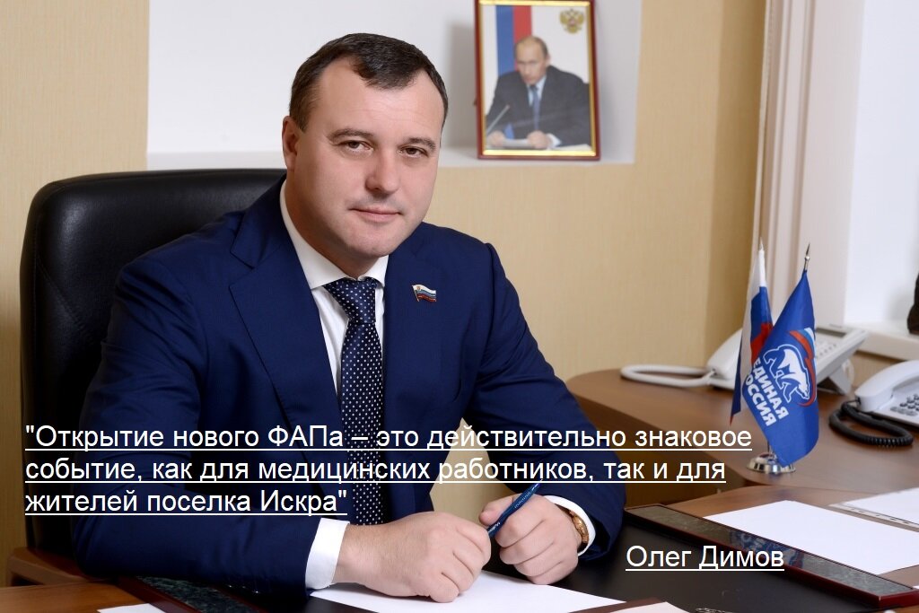 - Открытие нового ФАПа – это действительно знаковое событие, как для медицинских работников, так и для жителей поселка Искра. За последние 5 лет это второй построенный фельдшерско-акушерский пункт в нашем районе. В прошлом году открыли аналогичный ФАП в селе Шахматовка. Считаю, что люди на селе, также, как и в городе должны получать своевременную медицинскую помощь в достойных и комфортных условиях, - отметил Олег Димов, Секретарь Оренбургского регионального отделения партии "Единая Россия".