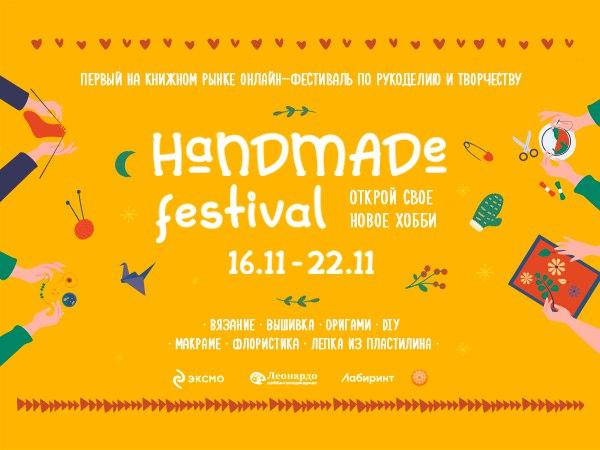 Первый на книжном рынке онлайн-фестиваль по рукоделию и творчеству «HANDMADE FEST» стартует 16 ноября, в Международный день рукоделия. Развивайте мастерство в любимом хобби и открывайте новые увлечения, не выходя из дома.