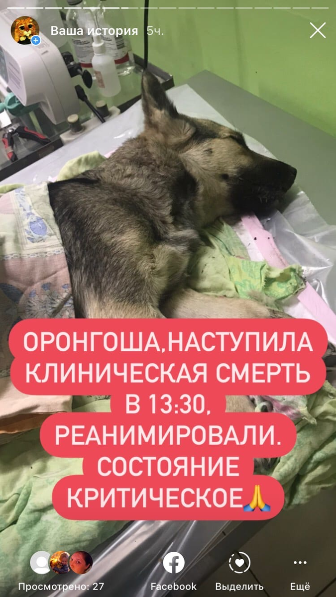 10.11.2020 сообщили о сбитой собаке, 50 км от города. Ехать за ней никто не торопился, поэтому пришлось выдвигаться. Собака была доставлена в клинику в бессознательном состоянии. Сделали узи, собака беременна, возможно разрыв матки, черепно-мозговая травма, переломы. Срочно нужен был нужен донор и экстренная операция! Брадикардия. Давления нет, температуры тоже, у собаки переохлаждение. Собаку