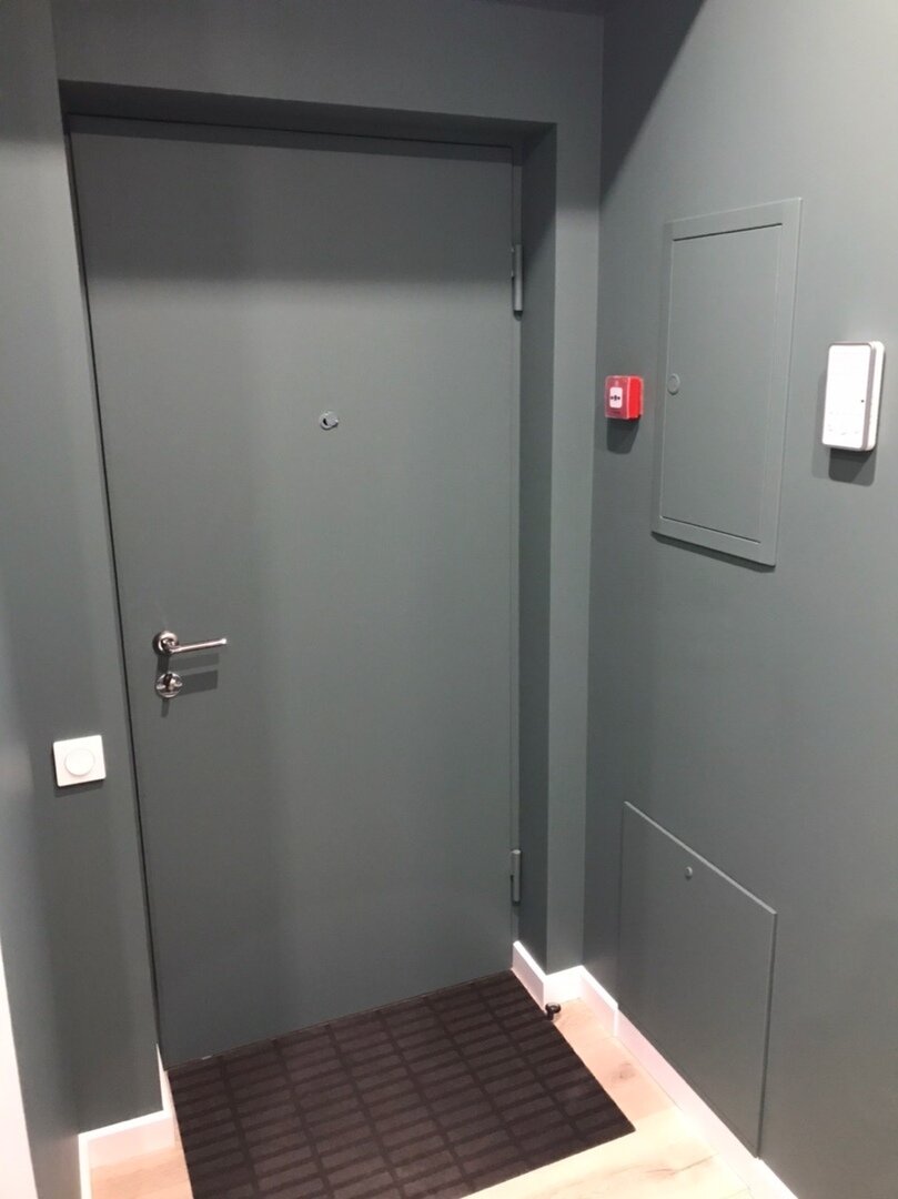 Вот, например, прихожая. Хозяева решили сделать всё в ней одного цвета, вероятно, чтобы визуально сделать более цельной и не делить пространство. Решение спорное, соглашусь, по крайней мере выбор цвета достаточно своеобразный. Но ведь жить в этой квартире не нам, и если хозяева сделали менно так - значит им так нравится.