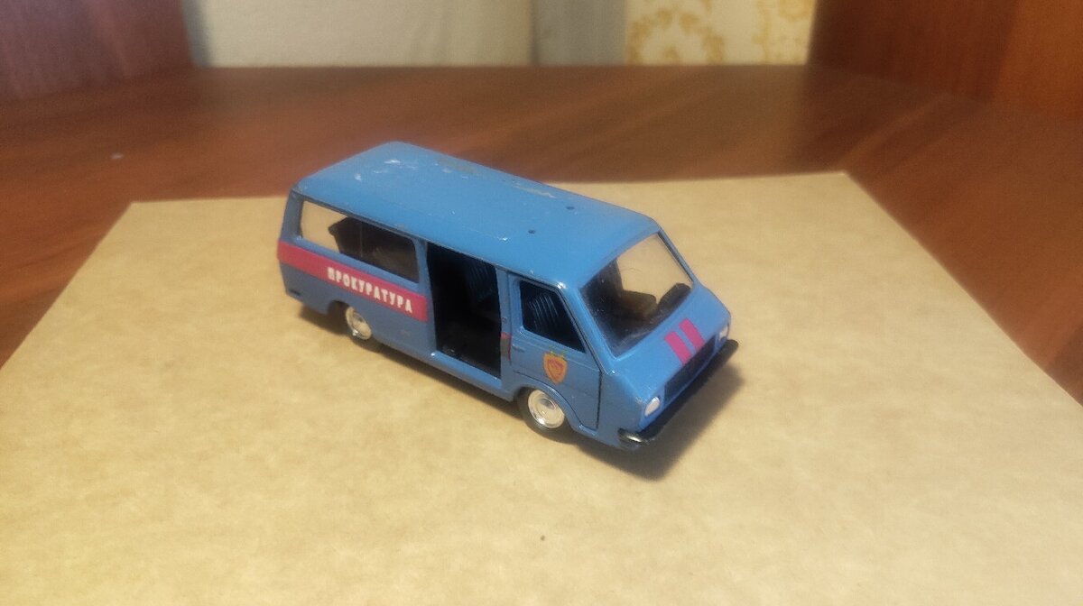 Как Вы можете рассмотреть - Рафик ранее трудился в Прокуратуре России, однако во время эксплуатации он лишился многих элементов: люстры, водительской, багажной и салонной двери, заднего бампера, а также один стопарь был испорчен клеем. Безусловно, модель с интересными тампами всегда жалко вдвойне, но что поделать, судьбе этого микроавтобуса не позавидуешь - ему явно не повезло с "водителем". Кстати, была еще одна серьезная проблема...