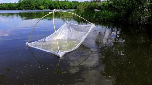 Если принято решение сделать такое приспособление своими силами, то придётся изготовить сеть. Сделать это можно из капроновой нити, лески. Технология плетения сети непростая, однако, специальная сеть для подъёмника рыбы иногда встречается в рыболовных магазинах. Это значительно облегчает задачу.