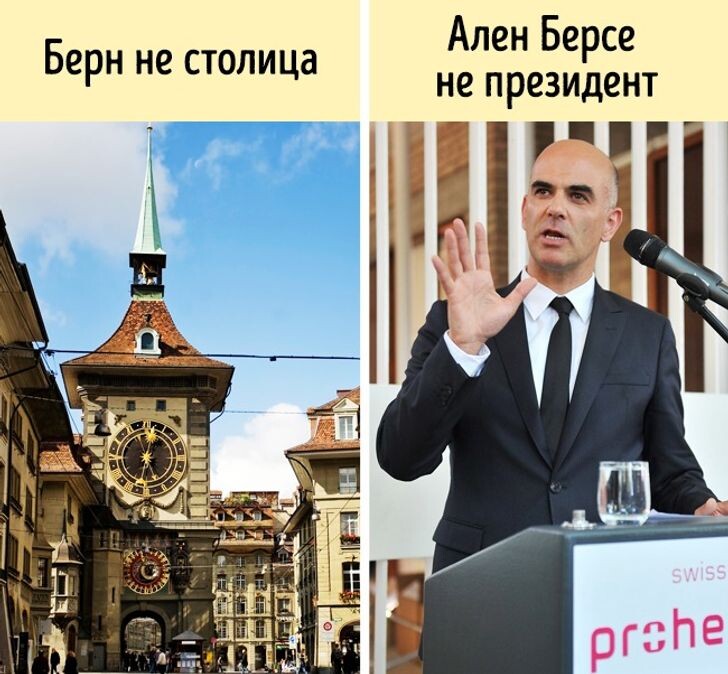 В Швейцарии действительно нет президента и столицы, зато есть 4 государственных языка и право граждан с помощью референдума отказаться от любого принятого парламентом закона. За всю историю здесь никогда не было межнациональных конфликтов.