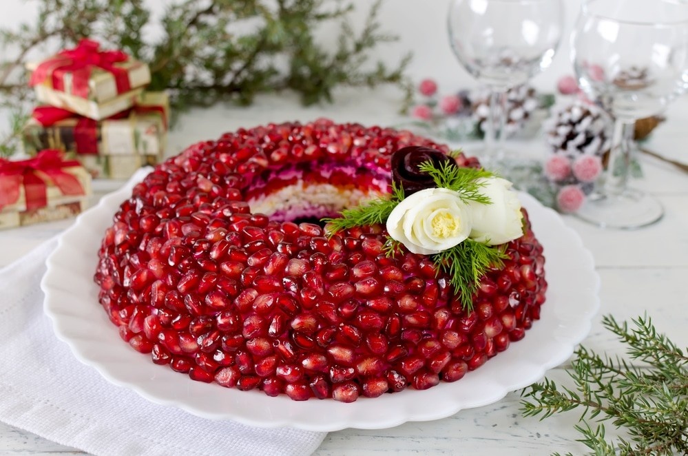 - Для эффектной подачи верхушку покрываем гранатовыми зернами.
