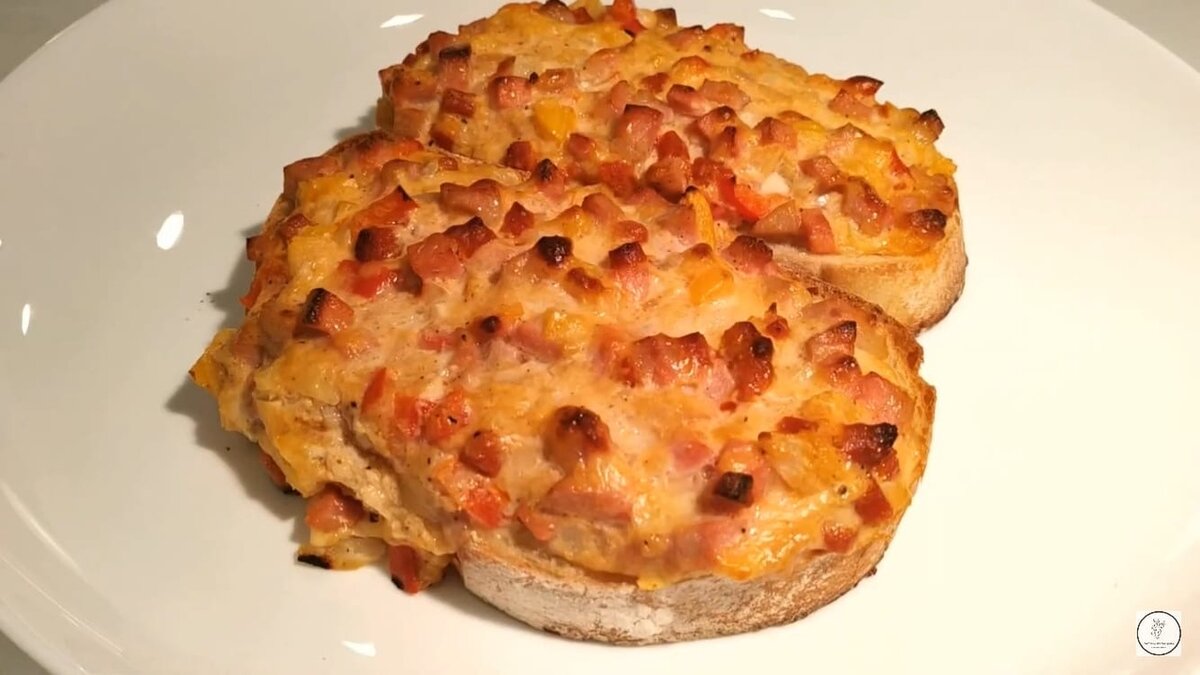 - Намазываем начинку на ломтики хлеба и ставим в духовку