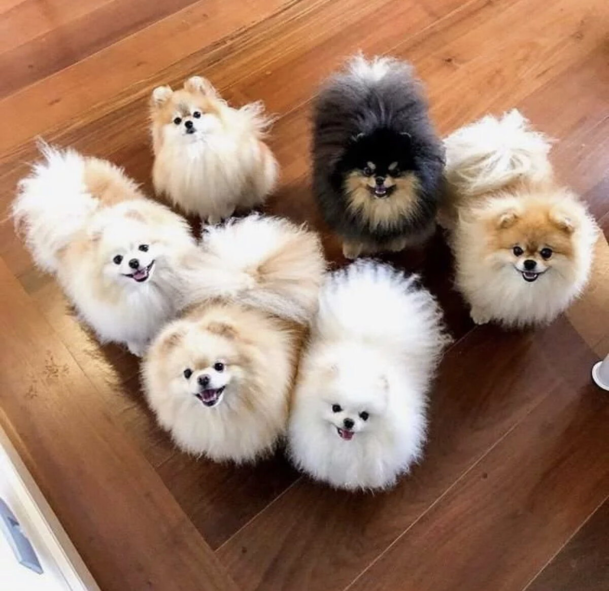 - Померанский шпиц (карликовый) ― не более 22 см в высоту. Имеет различную окраску: от кремовой до шоколадной. Игривый и дружелюбный, но к посторонним относятся настороженно.