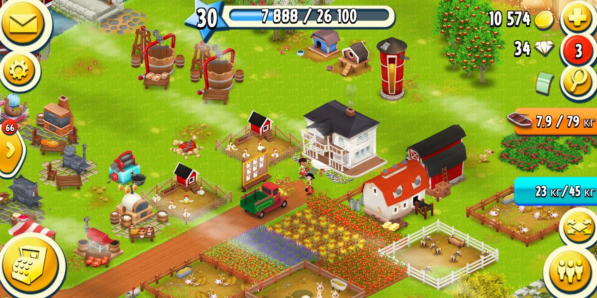В игру Hay Day, я начал играть месяц назад, на данный момент у меня 30-ый уровень фермы и игра не надоела, она затягивает