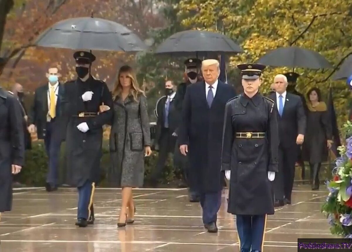 Президент и первая леди вместе приняли участие в церемонии возложения венков к Могиле Неизвестного Солдата на Арлингтонском национальном кладбище.