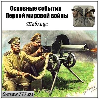 Основные события Первой мировой войны. Таблица (кратко)... Первая мировая война (28 июля 1914 год - 11 ноября 1918 год) В войне приняло участие 33 страны (с доминионами и Индией – 38) с населением 62 % от мирового. В начале XX столетия обострились противоречия между двумя коалициями европейских стран – с Россией, Англией, Францией (Антанта) с одной стороны и Германией, Австро-Венгрией и Италией (Тройственный союз) с другой. Это была борьба за передел уже поделенных колоний, сфер влияния и рынков сбыта. Война началась в Европе, и со временем начала приобретать глобальный характер, охватывая территории Дальнего и Ближнего Востока, Африку, акватории Атлантического, Тихого, Северного Ледовитого и Индийского океанов. Поводом для начала военных действий стало так называемое "Сараевское убийство), теракт который был совершен в июне 1914 г. в городе Сараево. Тогда одним из членов организации «Млада Босна» (сербско-боснийской революционной организации, боровшейся за присоединение Боснии и Герц