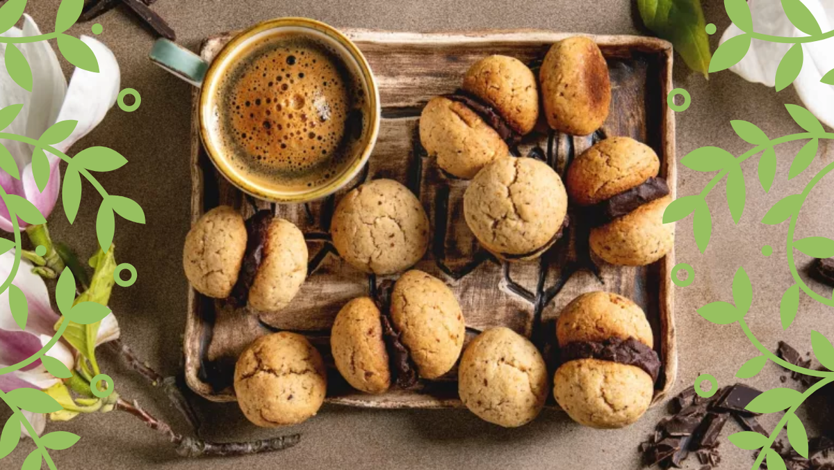 - Склеиваем печенье плоскими сторонами с помощью шоколада и подаем к чашке хорошего кофе.