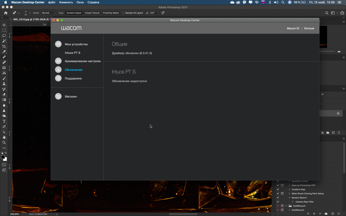 Привет. Хочу поделиться одним наблюдением. Часто при работе в Photoshop, непосредственно при ретушировании с использованием графического планшета Wacom, бывало что он просто зависал и ничего не помогало кроме как просто его перезагрузить.