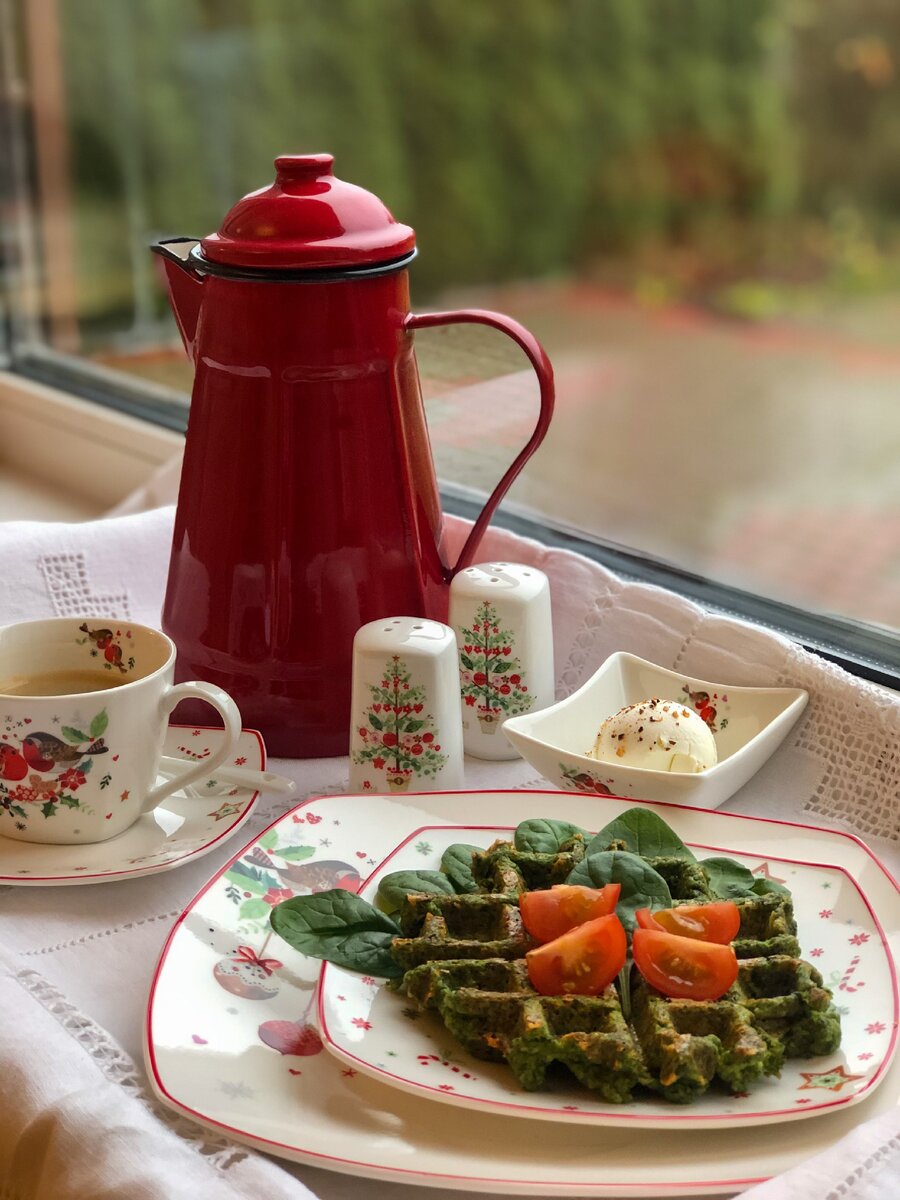 Вафли с сыром - одни из самых вкусных видов несладких вафель, а если добавить шпинат, то они становятся вдвойне полезными по свойствам и яркими по цвету.