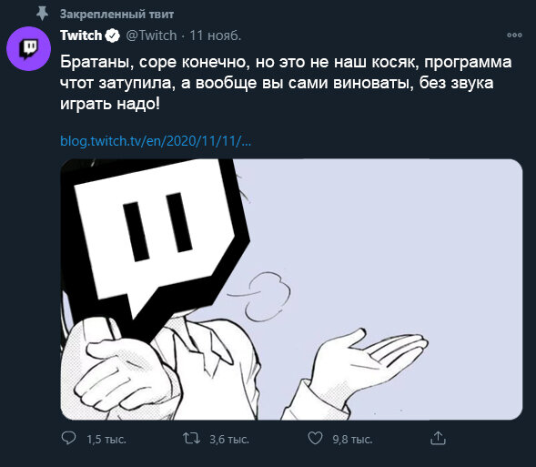 И вот 11-го ноября Twitch принёс очередные извинения, скинув все проблемы на некорректную/несовершенную