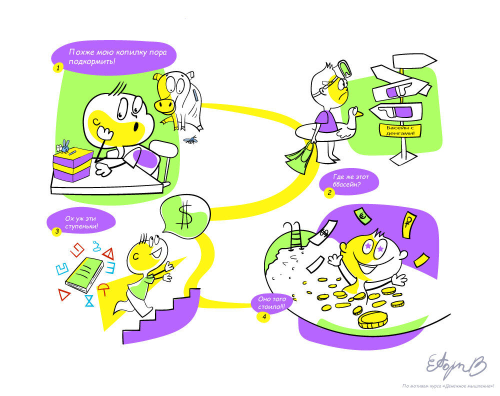 Мой мини комикс который я сделал после прохождения курса "Денежное мышление" для подростков. Было прикольно! В школе таких уроков точно нет!😎