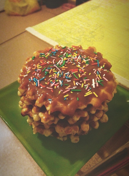 - Распаковываем вафли и каждую вафлю смазываем нашим кремом. ( 2 минуты )