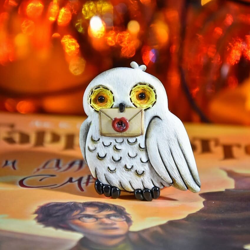 Ну вот и третья брошка-крошка из серии, посвященной "Гарри Поттеру", подоспела. Размер 4 х 4,5 см. Всю компанию ищите на 3м фото 😊