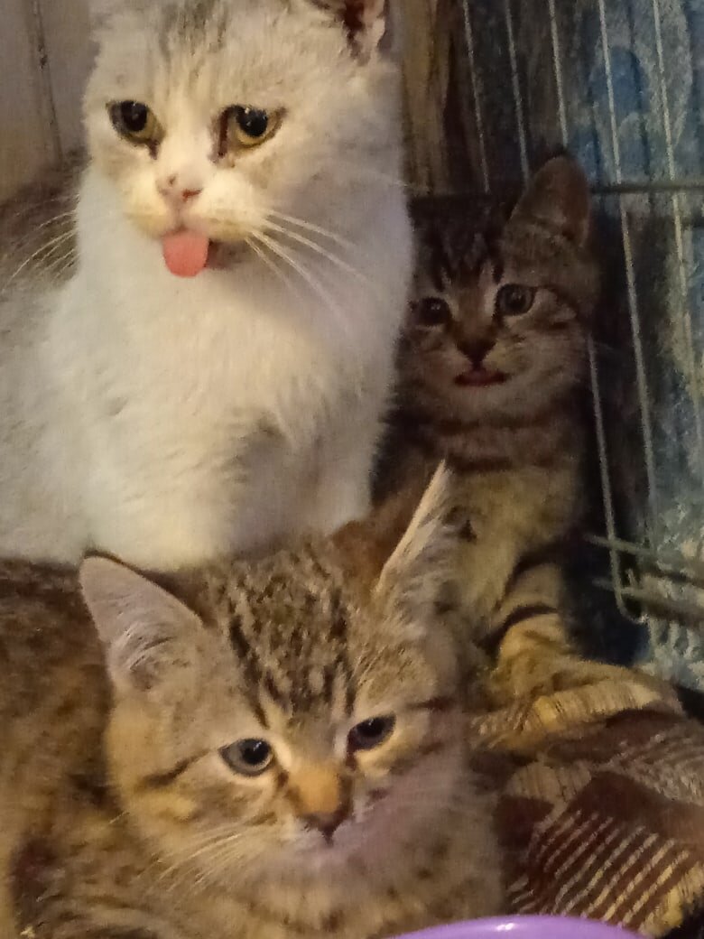 У волонтера Елены Х. для вас замечательная новость! Сегодня второй котенок кошечки Леси (который был дикий) отправился к маме и братишке на передержку, на Западную! Вся пушистая семья снова вместе! Леся и ее сынок: адаптация животных из заброшенного дома