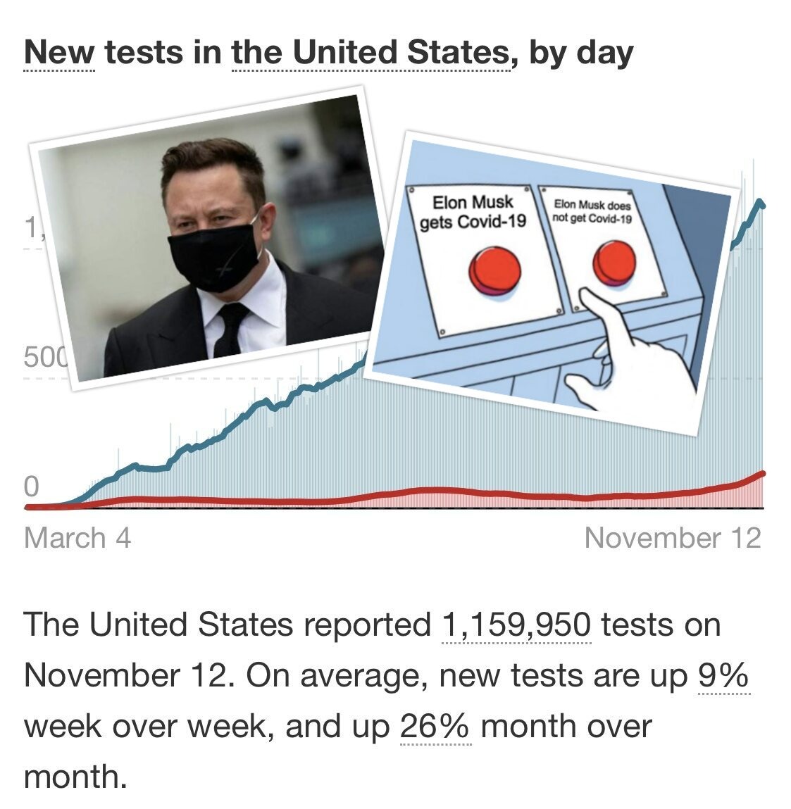 Так получилось и у Илона Маска, из четырёх тестов 2 показали, что коронавирус есть, а два, что его нет. На что Илон, в свойственной ему манере написал: "Происходит что-то очень фальшивое. Сегодня была проведена проверка на covid четыре раза. Два теста дали отрицательный результат, два - положительный. Та же машина, тот же тест, та же медсестра. Экспресс-тест на антиген от BD. Технически я дал положительный результат, затем дважды отрицательный, затем снова положительный, так что сообщение, что «Илон Маск даёт отрицательный результат на Covid» - не менее правильное название. «Экспресс-тест на антиген» от BD кажется таким же полезным, как подбрасывание монеты".