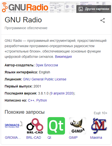 GNU Radio - это бесплатный набор инструментов для разработки, который предоставляет собой блоки обработки сигналов для создания программных радиоприемников. Дополнительная информация.