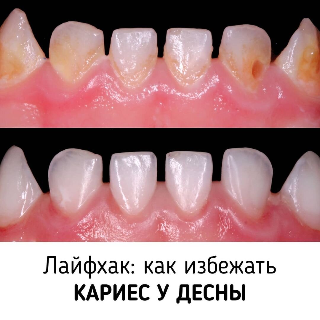 Кариес в придесневой области не спроста там развивается. У каждого из вас во рту есть зубодесневая борозда (кармашек между зубом и десной). В нем скапливается колоссальное количество бактерий, остатков пищи и налёта – завод кислоты!