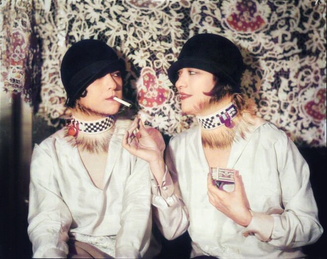 Оказывается, действительно такое было. Но советский журнал от 1927 года несколько припозднился с шокирующими новостями. В 1924 году в Париже появляется рекламный снимок с сестрами Долли (популярными танцовщицами и певицами в 20-х), где их шеи украшают собачьи ошейники. Чуть ниже под снимком писалось, что если вы не хотите отставать от мира высокой моды, то непременно должны обзавестись подобными украшениями.